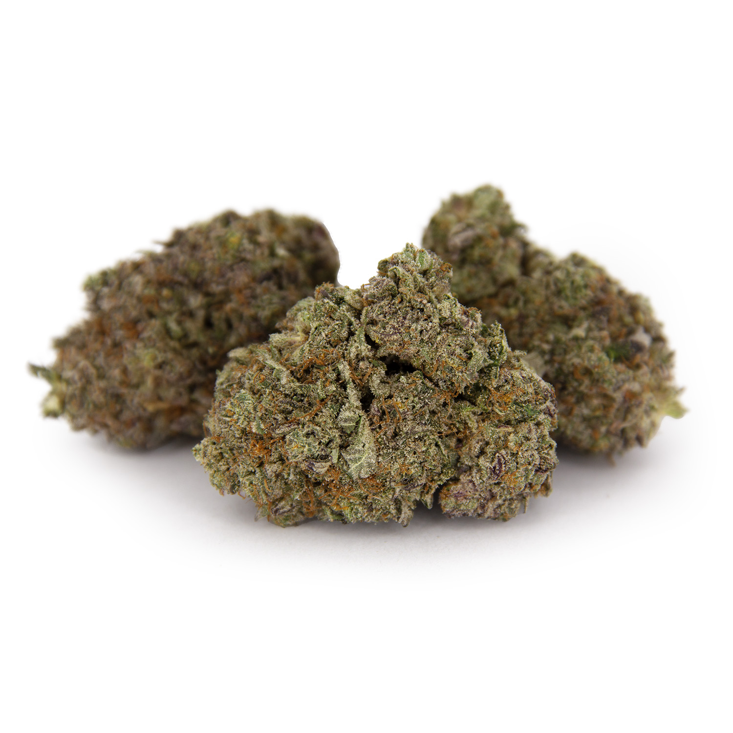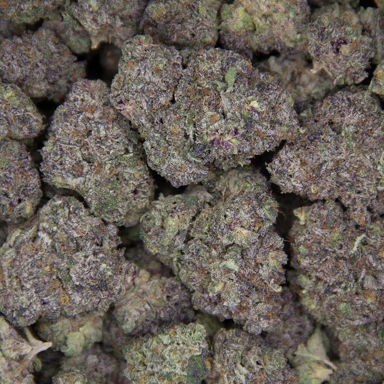 Do-Si-Dos is an indica dominant hybrid (70% indica/30% sativa) strain created through crossing the potent Girl Scout Cookies with Face Off OG. Named for the favorite Girl Scout Cookie, Do-Si-Do has a sweet addicting minty cookie flavor that you won’t be able to get enough of. Just be warned – with its super powerful 28-30% THC level it’s easy to overdo it. The smell of Do-Si-Do is just as intoxicating as the flavor, with a sweet minty aroma that’s accented by fresh lime and pine. Once you get past the flavor, the effects are just as addicting. The Do-Si-Do high hits you fast and hard with a cerebral rush of euphoric energy that lasts for only a few moments before fading into a happy stoney introspection. As your mind falls deeper and deeper into itself, a warming body buzz will start to wash over you, first moving down your spine before extending through your limbs, leaving you helplessly sedated and completely couch-locked. With these hard-hitting effects, Do-Si-Do is said to be perfect for the experienced user suffering from conditions such as insomnia, chronic pain, nausea, and depression. Do-Si-Do buds have conical olive green nugs with bright amber hairs, purple leaves, and a sticky coating of sweet syrupy resin that coats each and every bright frosty white trichome.