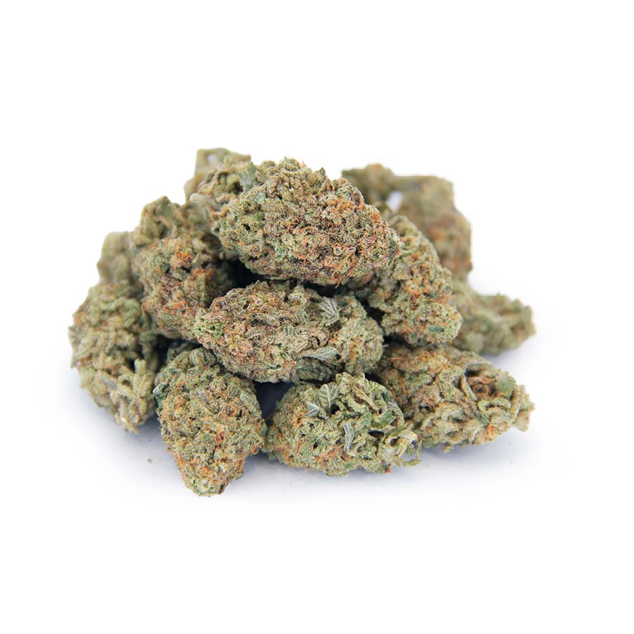 Fall Frost is an evenly balanced hybrid strain (50% indica/50% sativa) created through an unknown combination of other hybrid strains. Although its true parentage is kept a closely guarded secret by its breeders, Fall Frost is often sought out for its soothing high and high level of potency. The high will settle in a few moments after your final exhale, filling the mind with a boosted sense that has you feeling happy and focused. You’ll also be mentally calm, free of any bad moods or racing thoughts to speak of. This deep relaxation will soon settle into your body, helping you to stretch out and relax without a care in the world. Thanks to these effects and its high 22-25% average THC level, Fall Frost is often chosen to treat a variety of conditions including chronic stress or anxiety, depression, chronic fatigue and chronic pain. This bud has a sweet and spicy peppery flowery flavor with hints of woody pine and fresh earthiness. The aroma is very similar, with a spicy black pepper overtone accented by woody pine and flowery earth. Fall Frost buds have dense, grape-shaped minty green nugs with blue undertones, thin orange hairs and tiny, blue-tinted white crystal trichomes.