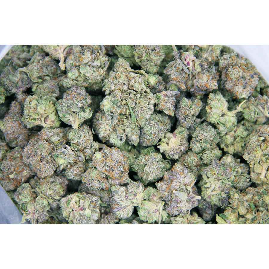 Pinkman Goo is a rare indica dominant hybrid strain (80% indica/20% sativa) created through crossing the infamous Granddaddy Purps X Grape Ape X Northern Lights #5 strains. Named for Jesse Pinkman of Breaking Bad fame, this bud pakcs a punch of effects that will have you kicking back and stress-free in no time at all. The high starts with a light lifted effect that fills your mind with a touch of cerebral energy and euphoria. As your mind lifts into this active and focused state, your body will begin to settle into pure relaxation. You’ll be physically calm and totally at ease without too much couch lock or sedation. With these effects and its high 18-19% THC level and 1% CBD level, Pinkman Goo is often chosen to treat those suffering from conditions such as chronic fatigue, depression, chronic pain, insomnia and chronic stress. This bud has a classic sweet fruity berry flavor with a touch of spicy grapes and herbs upon exhale. The aroma is very herbal and spicy with a berry coffee overtone that is slightly earthy at times. Pinkman Goo buds have super sticky grape-shaped forest green nugs with brownish-orange hairs, dark olive leaves and a coating of frosty tiny white crystal trichomes.