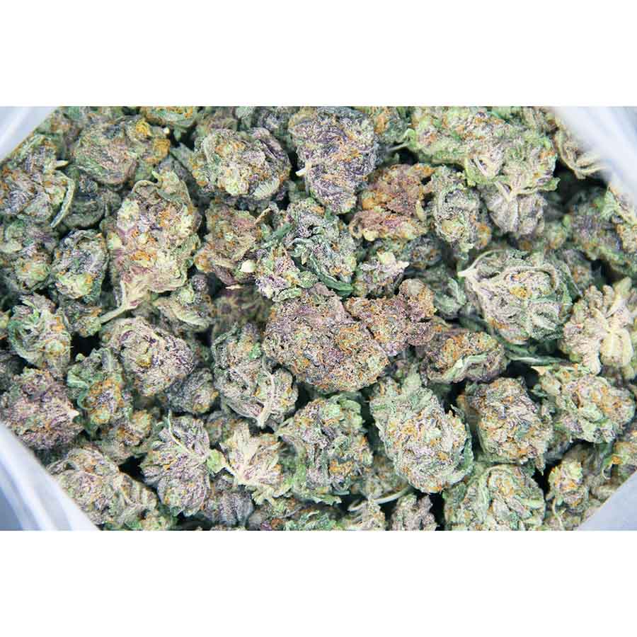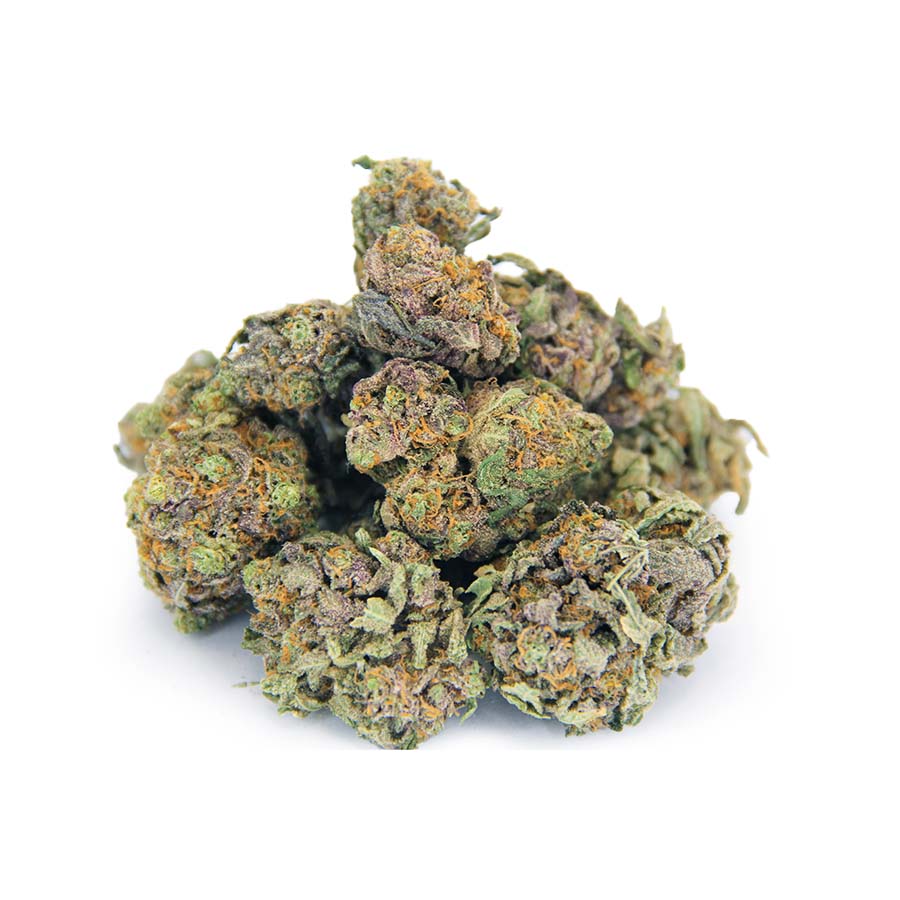 Purple Runtz is an evenly balanced hybrid strain (50% indica/50% sativa) created through crossing the delicious Zkittlez X Gelato #33 strains. Named for its delicious flavor and gorgeous appearance, Purple Runtz is the perfect choice for any hybrid lover. This bud has dense grape shaped bright neon green nugs with thick orange hairs, vibrant purple undertones and a frosty, thick coating of tiny, purple-tinted white crystal trichomes. As you pull apart each sparkling little nugget, aromas of fresh sweet grape candy and sour citrus are released, accented by touches of fresh earthiness. The flavor is on the sweeter side of things, with a fresh tropical citrus overtone accented by sweet and sugary grape candy. The Purple Runtz high is just as delicious, with stimulating and lifted effects that will boost the mind while helping the body truly settle down into a state of pure ease. You’ll feel euphoric with a happy sense of stimulating mental energy that quickly turns tingly and arousing. This tingle will soon spread throughout your entire body, leaving you feeling aroused yet relaxed and totally calmed from head to toe. Combined with its high 18% + average THC level, these effects make Purple Runtz a great choice for treating chronic pain, depression, chronic stress or anxiety and cramps or muscle spasms.