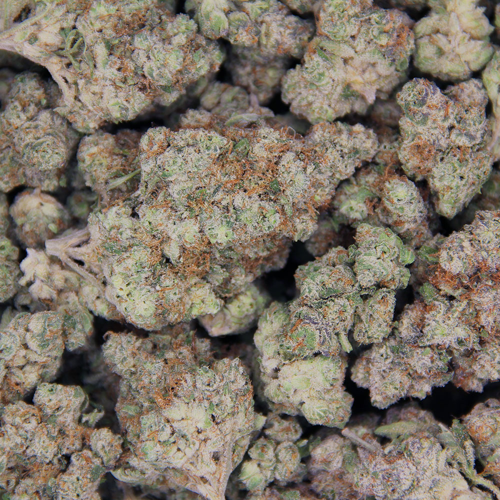Raspberry Haze is a sativa dominant hybrid strain (70% sativa/30% indica) created through crossing the potent Raspberry Punch X Chem Haze strains. Named for its delicious flavor and its classic heritage, Raspberry Haze is the perfect choice for any sativa lover. Like its name suggests, this bud has a sweet and fruity berry raspberry flavor with a lightly spicy and hazy exhale. The aroma is very similar, with a spicy haze overtone accented by sweet fresh raspberries and rich flowers. The Raspberry Haze high is just as delightful, with lifted effects that boost the spirits with a slightly unfocused happiness. You’ll feel euphoric as your mood flies higher and higher, filled with a sense of creative focus and mental energy. This focus does tend to ebb and flow, leaving you slightly hazy and out of touch at times. In combination with its high 21-23% average THC level and 0-2% CBD level, these effects make Raspberry Haze a great choice for treating patients suffering from depression, chronic stress, headaches or migraines, chronic fatigue and ADD or ADHD. This bud has oversized spade-shaped forest green nugs with olive green leaves, thick orange hairs and a frosty thick coating of golden white crystal trichomes.